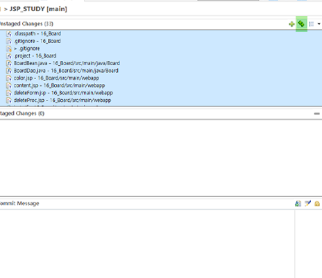 => unstaged changes의 파일들을 +가 두 개 있는 버튼을 눌러 staged changes로 이동
